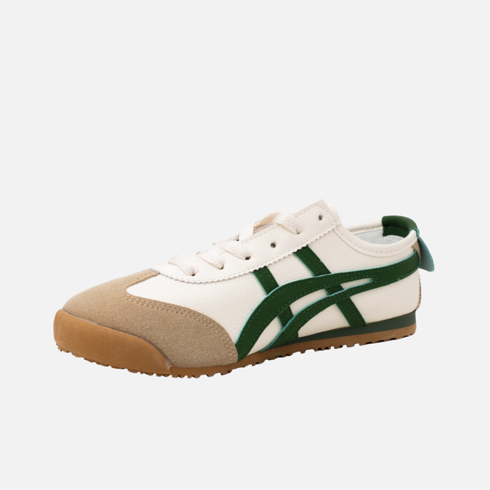 حذاء Asics Tiger نسائي بلون بيج وأخضر فاتح مع تصميم عصري وأداء مريح، خامات عالية الجودة ونعل مرن يناسب الاستخدام اليومي،مقدم من متجر ترافو.