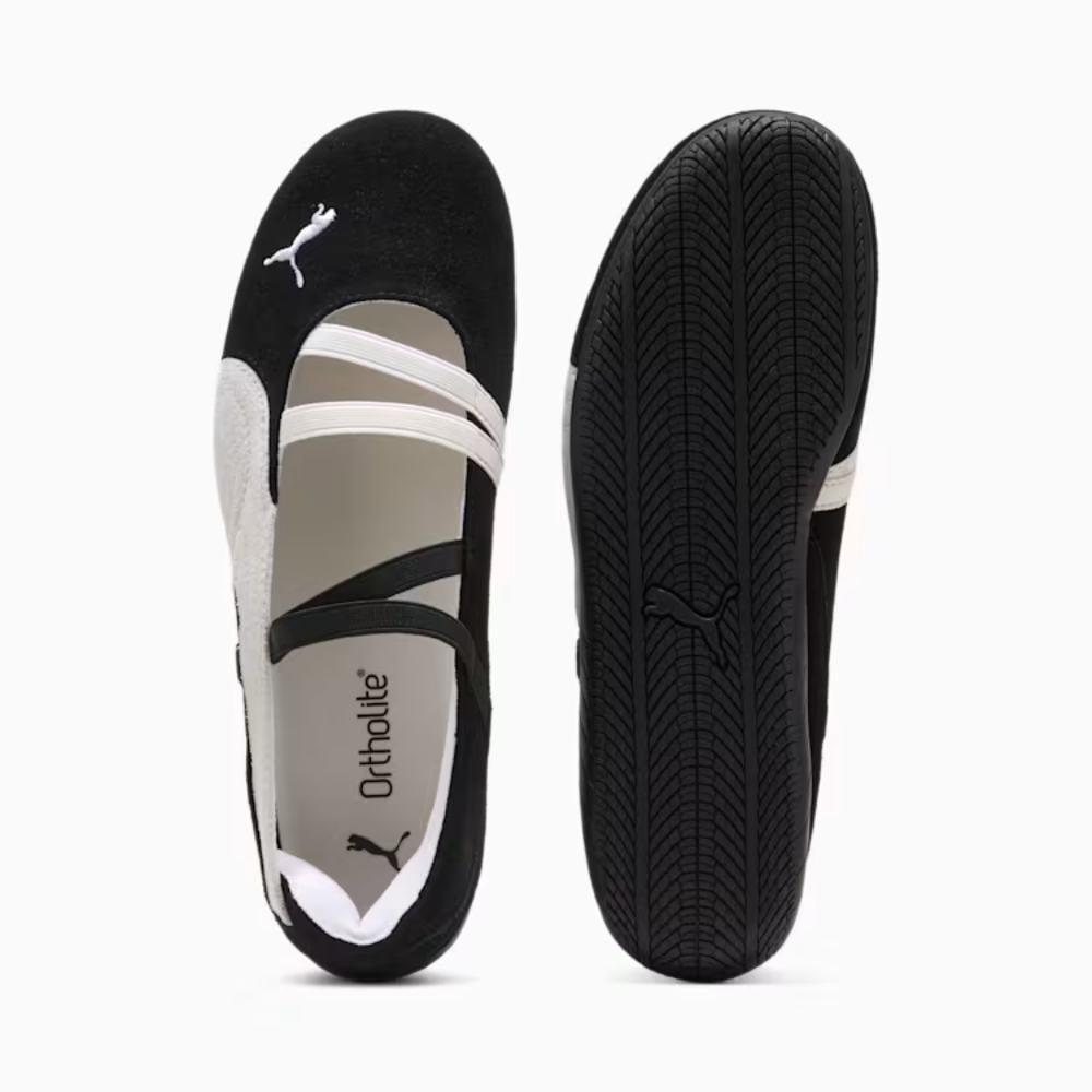 أضيفي لمسة أنثوية عصرية لإطلالتك مع هذا الحذاء الأنيق من PUMA، بتصميم يجمع بين الراحة والبساطة. يتميز بلونين متناسقين (أسود مع و ابيض) يمنحانك مظهراً أنثوياً ناعماً يناسب الاستخدام اليومي.